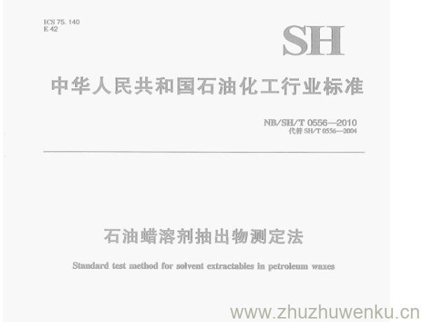 NB/SH/T 0556-2010 pdf下载 石油蜡溶剂抽出物测定法。Standard test method for solvent extractables in petroleum waxes.