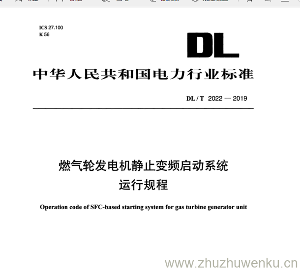 DL/T 2022-2019 pdf下载 燃气轮发电机静止变频启动系统 运行规程。Operation code of SFC-based starting system for gas turbine generator unit.