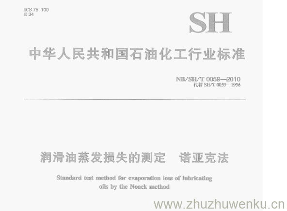 NB/SH/T 0059-2010 pdf下载 润滑油蒸发损失的测定诺亚克法。 Standard test method for evaporation loss of lubricating olls by the Noack method.