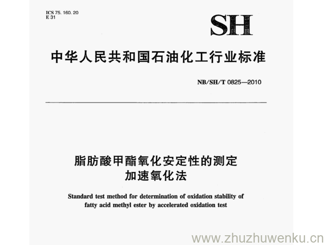NB/SH/T 0825-2010 pdf下载 脂肪酸甲酯氧化安定性的测定 加速氧化法。Standard test method for determination of oxidation stability of fatty acid methyl ester by accelerated oxidation test.