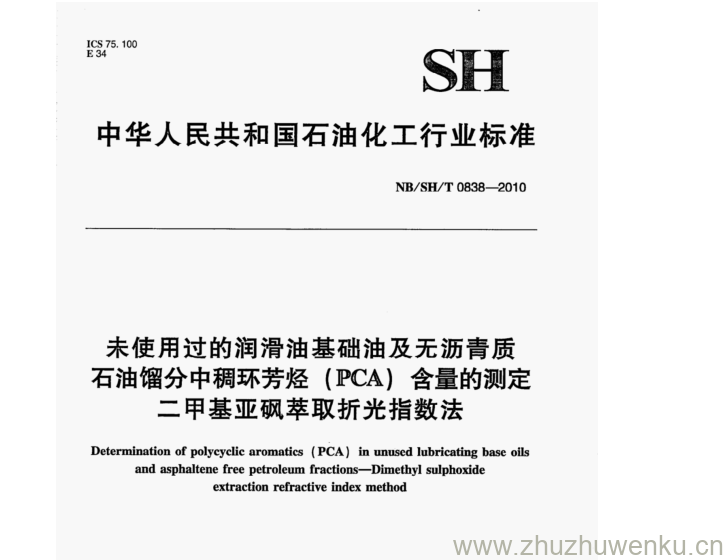 NB/SH/T 0838-2010 pdf下载 未使用过的润滑油基础油及无沥青质 石油馏分中稠环芳烃(PCA) 含量的测定 二甲基亚砜萃取折光指数法