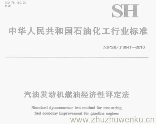 NB/SH/T 0841-2010 pdf下载 汽油发动机燃油经济性评定法。Standard dynamometer test method for measuring fuel economy improvement for gasoline engines.