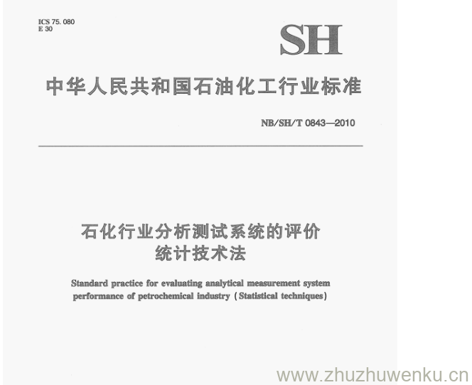 NB/SH/T 0843-2010 pdf下载 石化行业分析测试系统的评价 统计技术法。Standard practice for evaluating analytical measurement system performance of petrochemical industry ( Statistical techiques).