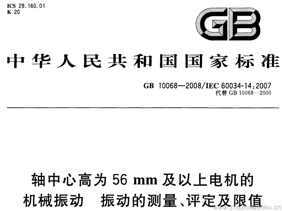 GB/T 10068-2008 pdf下载 轴中心高为56mm 及以上电机的机械振动 振动的测量、评定及限值
