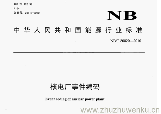 NB/T 20020-2010 pdf下载 核电厂事件编码。Event coding of nuclear power plant.