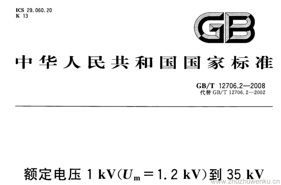 GB/T 12706.2-2008 pdf下载 额定电压1 kV(Um= 1.2 kV)到35 kV (Um=40.5 kV)挤包绝缘电力电缆及附件 第2部分:额定电压6 kV(Um=7. 2 kV)到 30 kV(Um=36 kV)电缆