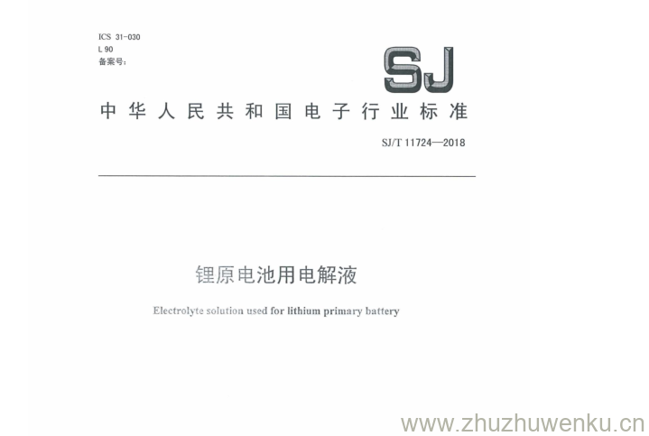 SJ/T 11724-2018 pdf下载 锂原电池用电解液。Electrolyte solution used for lithium primary battery.