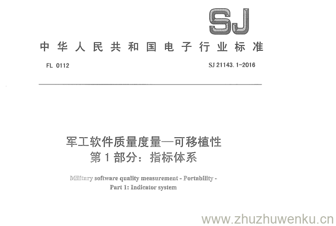 SJ 21143.1-2016 pdf下载 军工软件质量度量一可移植性 第1部分:指标体系