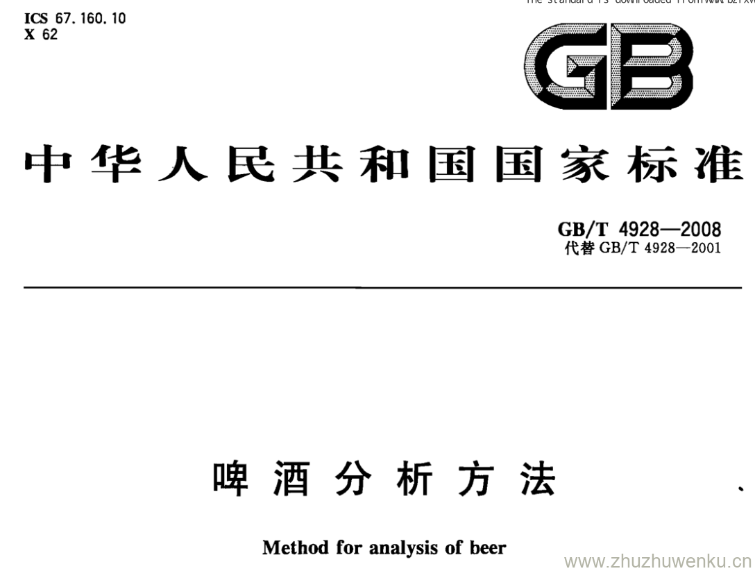 GB/T 4928-2008 pdf下载 啤酒分析方法