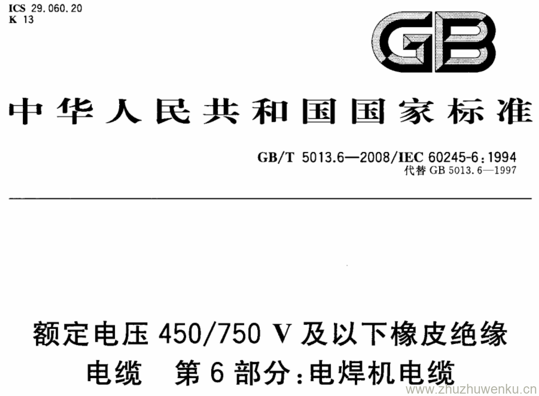 GB/T 5013.6-2008 pdf下载 额定电压450/750V及以下橡皮绝缘电缆 第6部分:电焊机电缆