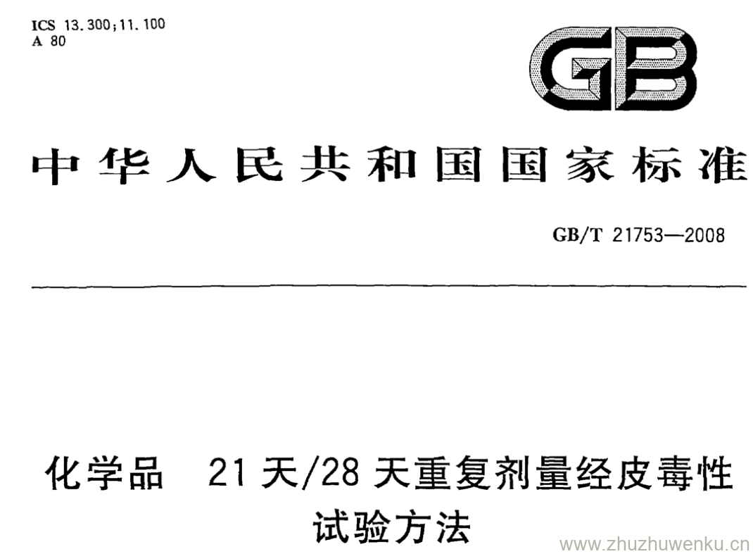 GB/T 21753-2008 pdf下载 化学品 21天/28天重复剂量经皮毒性 试验方法