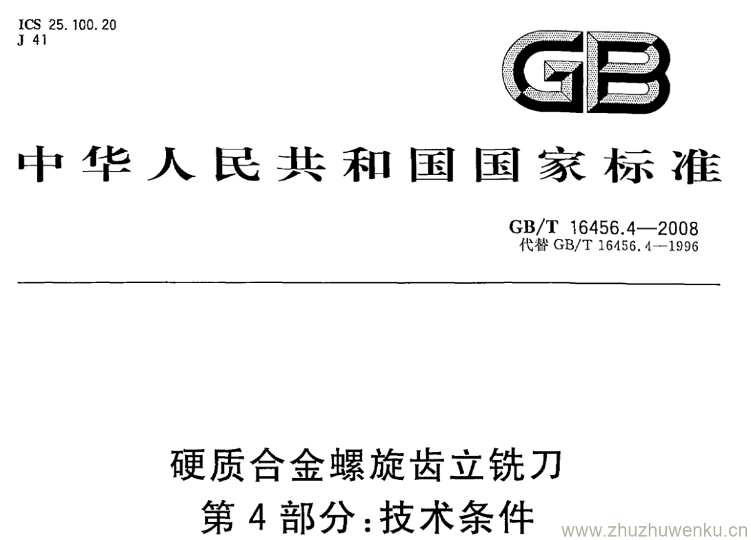 GB/T 16456.4-2008 pdf下载 硬质合金螺旋齿立铣刀 第4部分:技术条件