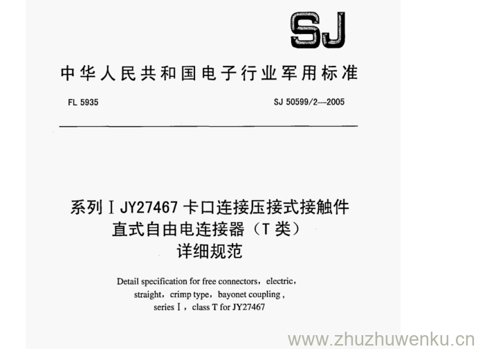 SJ 50599.2-2005 pdf下载 系列IJY27467卡口连接压接式接触件 直式自由电连接器(T类) 详细规范