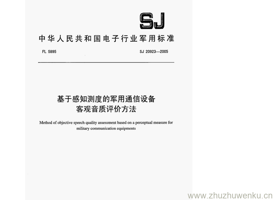 SJ 20923-2005 pdf下载 基于感知测度的军用通信设备 客观音质评价方法。Method of objective speech quality assessment based on a perceptual measure for military communication equipments.