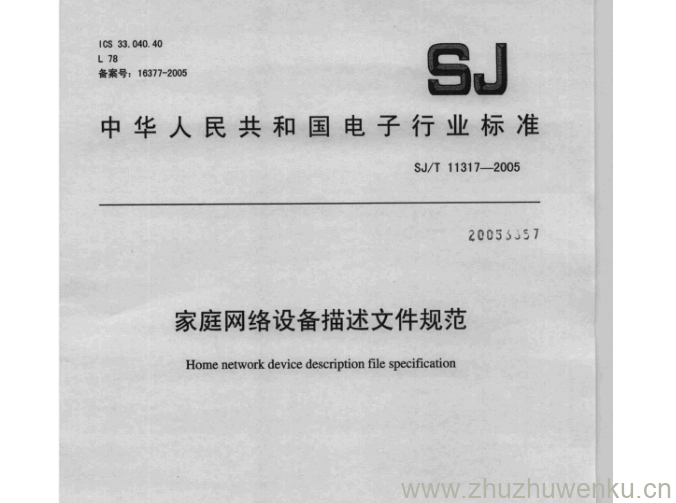 SJ 11317-2005 pdf下载 家庭网络设备描述文件规范。 Home network device description file specification.