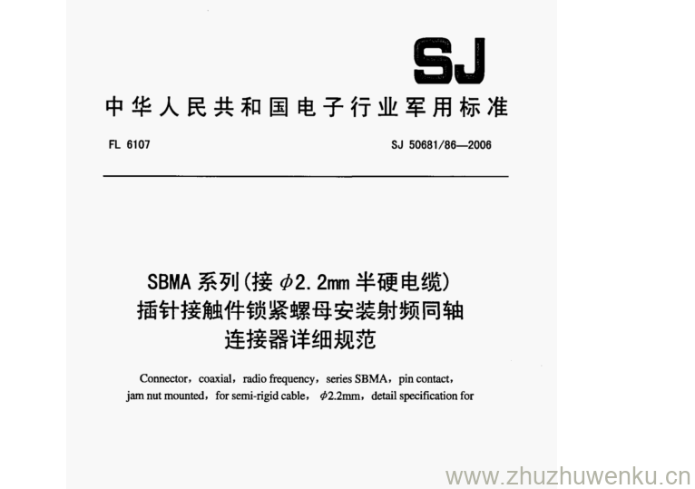 SJ 50681.86-2006 pdf下载 SBMA系列(接φ2.2mm半硬电缆) 插针接触件锁紧螺母安装射频同轴 连接器详细规范