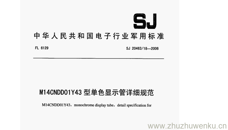 SJ 20463.18-2006 pdf下载 M14CNDD01Y43型单色显示管详细规范。M14CNDD01Y43,monochrome display tube, detail specification for.