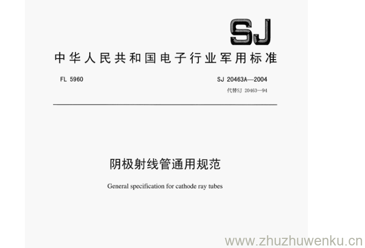 SJ 20463A-2004 pdf下载 阴极射线管通用规范。 General specification for cathode ray tubes.