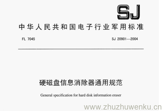 SJ 20901-2004 pdf下载 硬磁盘信息消除器通用规范。General specification for hard disk information eraser.