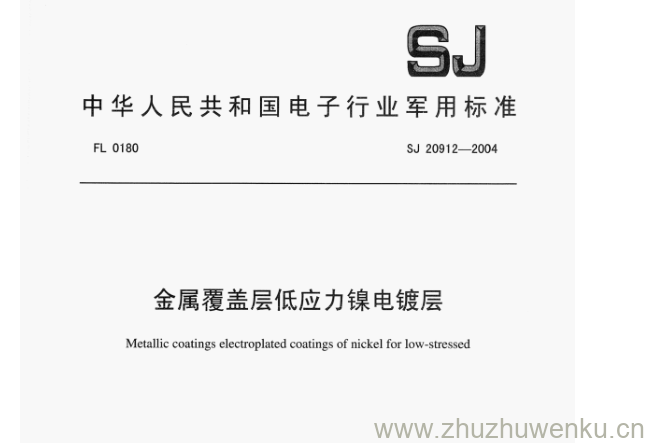 SJ 20912-2004 pdf下载 金属覆盖层低应力镍电镀层