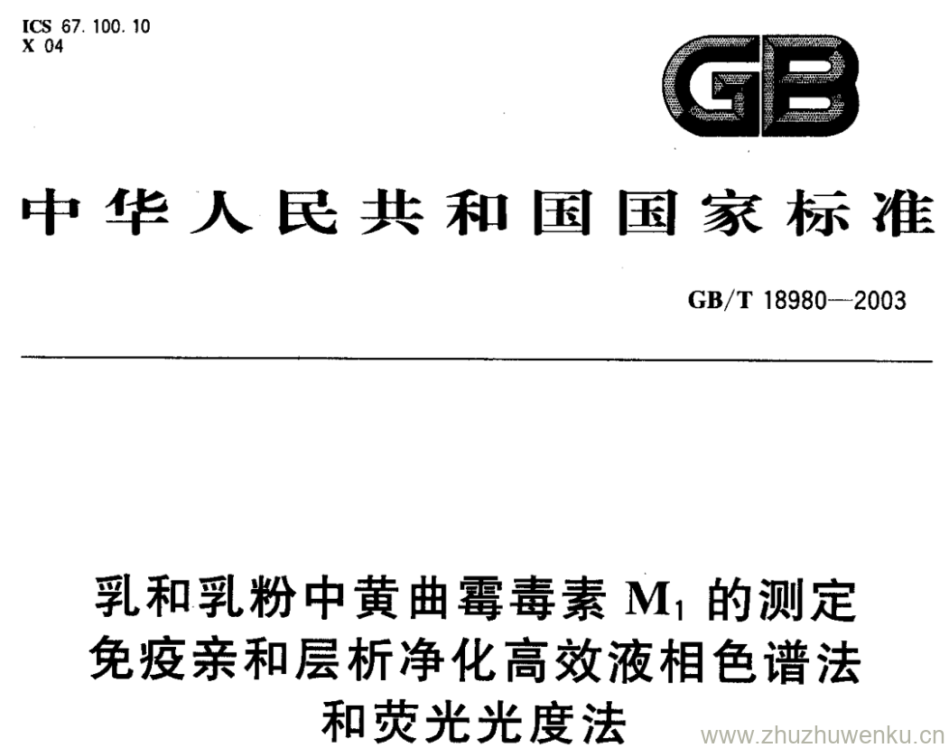 GB/T 18980-2007 pdf下载 乳和乳粉中黄曲霉毒素M1的测定 免疫亲和层析净化高效液相色谱法和荧光光度法