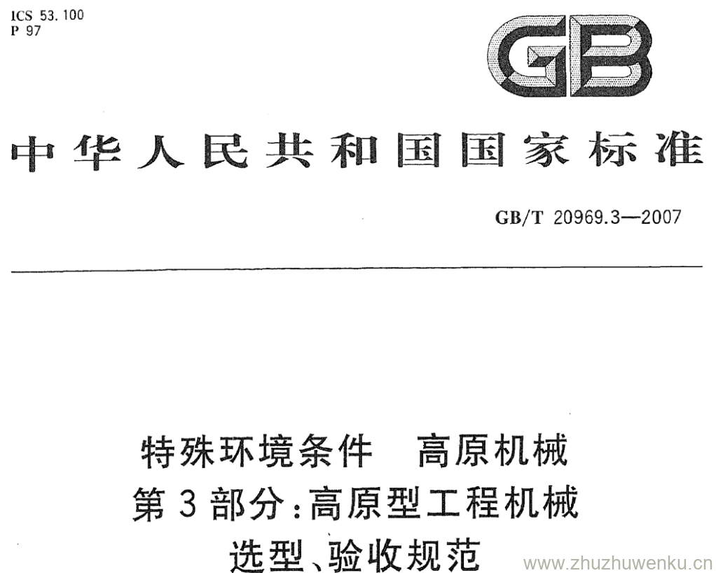 GB/T 20969.3-2007 pdf下载 特殊环境条件 高原机械 第3部分:高原型工程机械 选型、验收规范