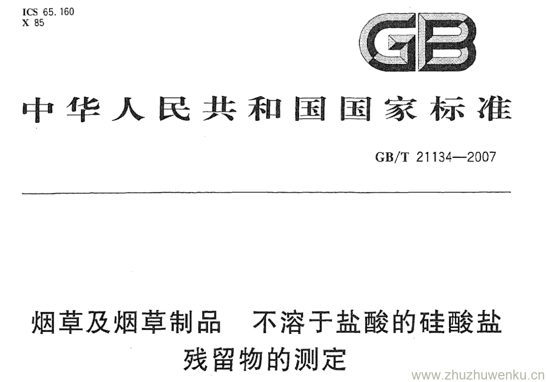 GB/T 21134-2007 pdf下载 烟草及烟草制品 不溶于盐酸的硅酸盐残留物的测定