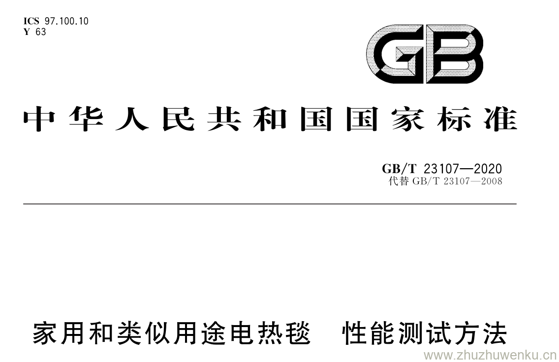 GB/T 23107-2020 pdf下载 家用和类似用途电热毯 性能测试方法