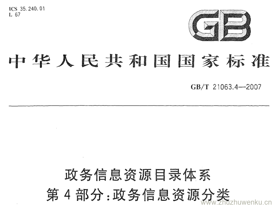 GB/T 21063.4-2007 pdf下载 政务信息资源目录体系 第4部分:政务信息资源分类