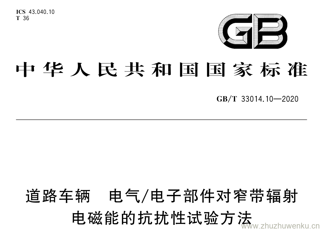 GB / T33014 的本部分规定了电气/电 子部件( ESA ) 对连续窄带辐射电骚扰的抗扰试验方法———扩展音频范围的传导抗扰法。