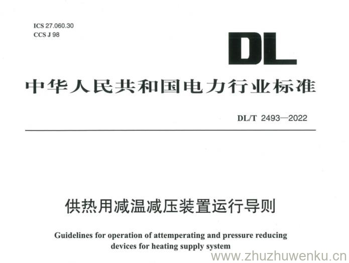 DL∕T 2493-2022 pdf下载 供热用减温减压装置运行导则。Guidelines for operation of attemperating and pressure reducing devices for heating supply system.