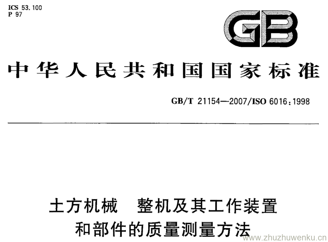 GB/T 21154-2007 pdf下载 土方机械 整机及其工作装置 和部件的质量测量方法