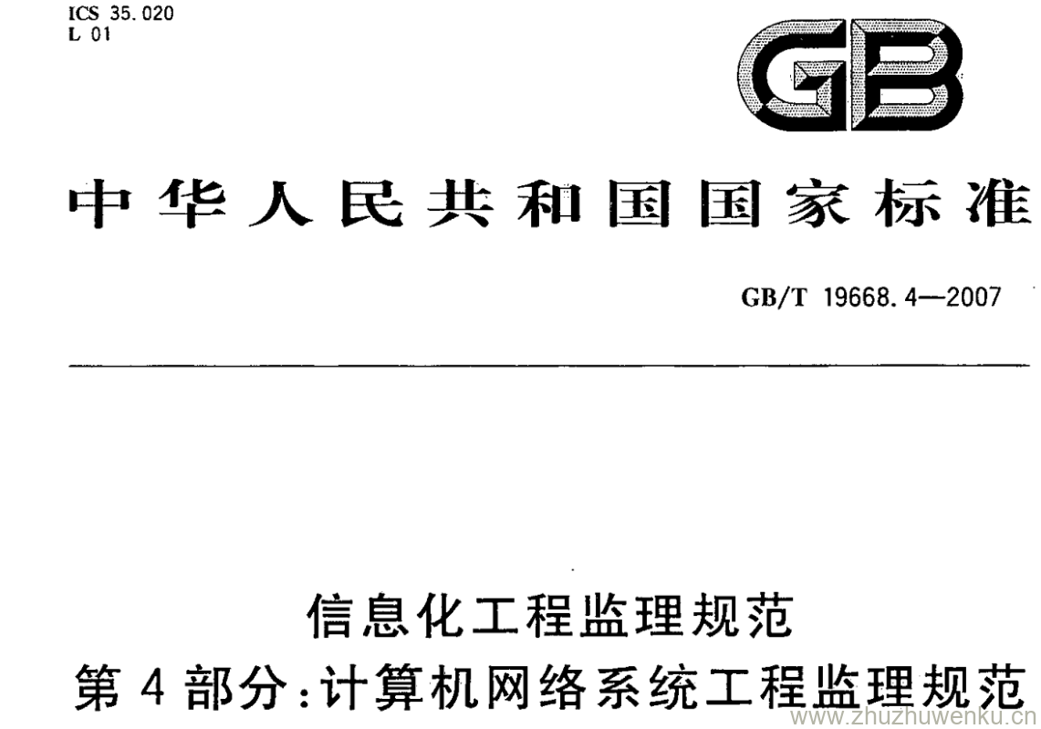 GB/T 19668.4-2007 pdf下载 信息化工程监理规范 第4部分:计算机网络系统工程监理规范