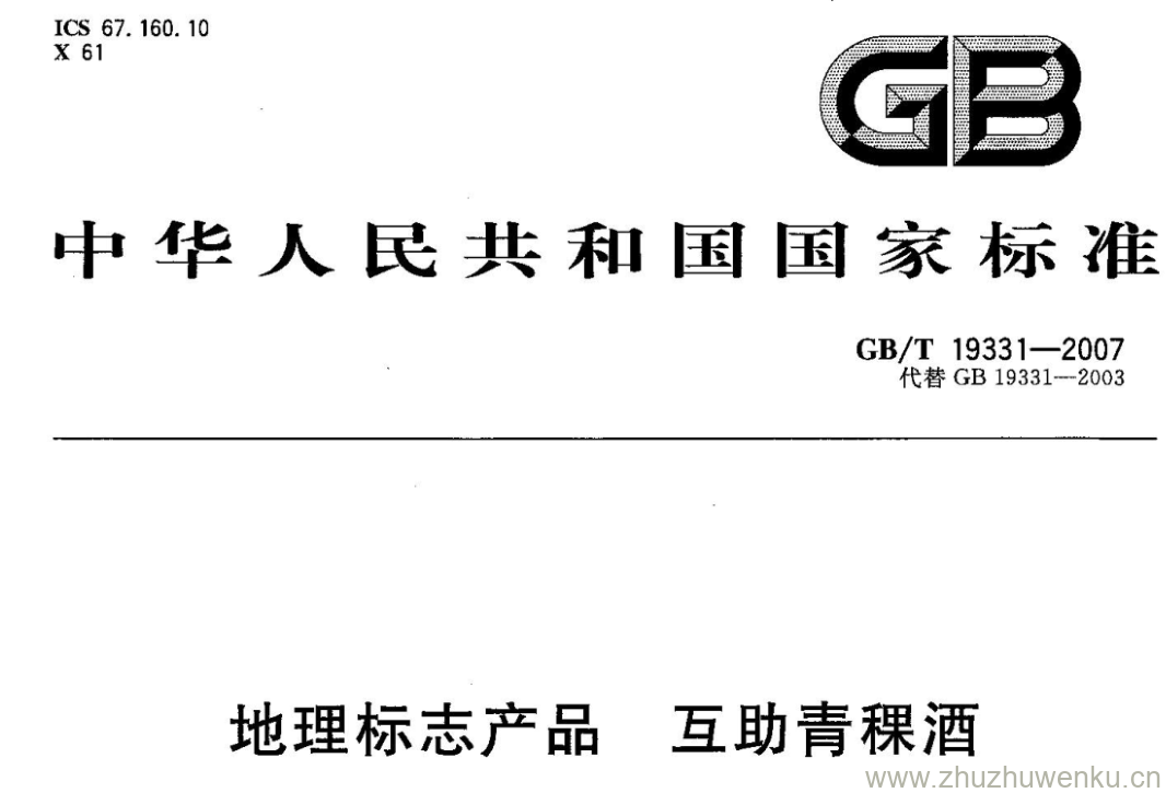 GB/T 19331-2007 pdf下载 地理标志产品 互助青稞酒