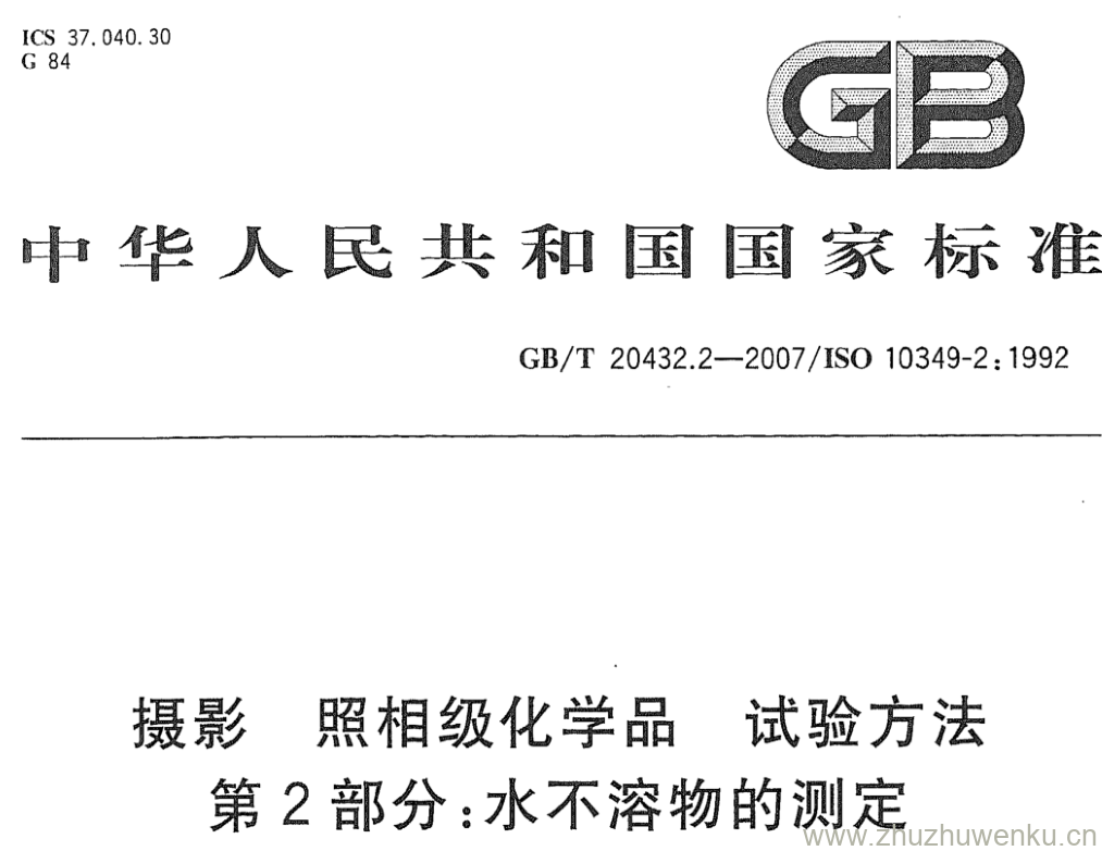 GB/T 20432.2-2007 pdf下载 摄影 照相级化学品 试验方法 第2部分:水不溶物的测定