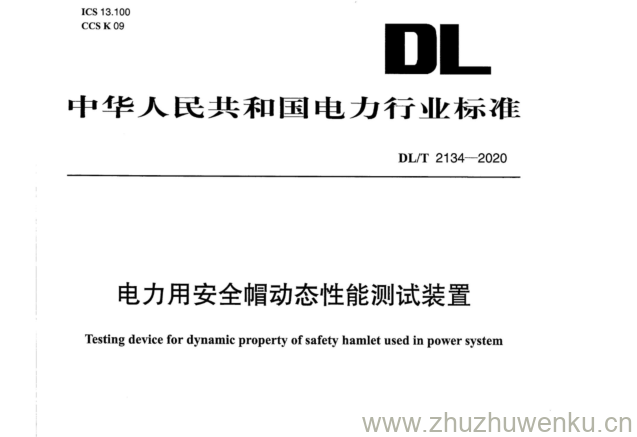 DL/T 2134-2020 pdf下载 电力用安全帽动态性能测试装置。Testing device for dynamic property of safety hamlet used in power system.