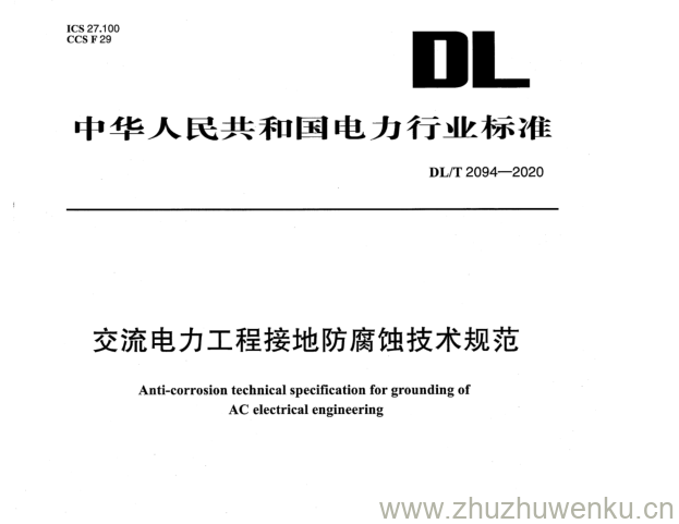 DL/T 2094-2020 pdf下载 交流电力工程接地防腐蚀技术规范。Anti-corrosion technical specification for grounding of AC electrical engineering.