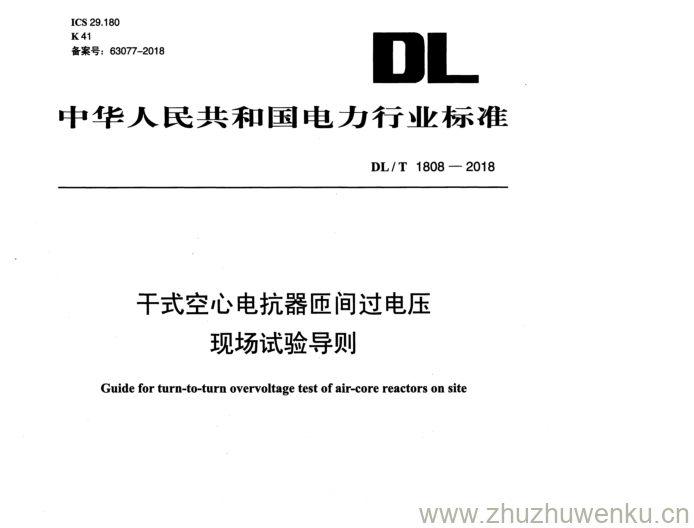 DL/T 1808-2018 pdf下载 干式空心电抗器匝间过电压现场试验导则。Guide forturn-to-turn overvoltage test of air-core reactors on site.