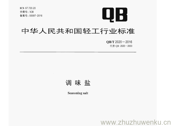 QB/T 2020-2016 pdf下载 调味盐