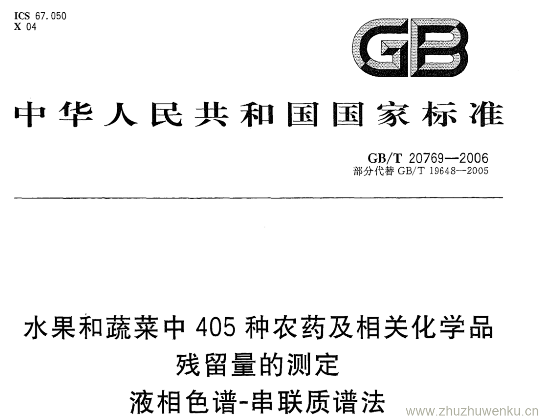 GB/T 20769-2006 pdf下载 水果和蔬菜中405种农药及相关化学品 残留量的测定 液相色谱-串联质谱法