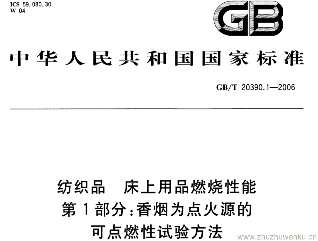 GB/T 20390.1-2006 pdf下载 纺织品 床上用品燃烧性能 第1部分:香烟为点火源的可点燃性试验方法