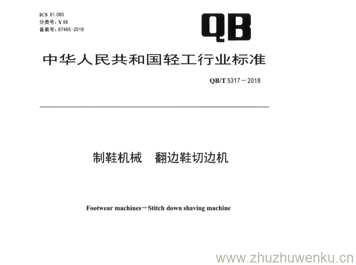 QB/T 5317-2018 pdf下载 制鞋机械翻边鞋切边机 。Footwear machines—Stitch down shaving machine.