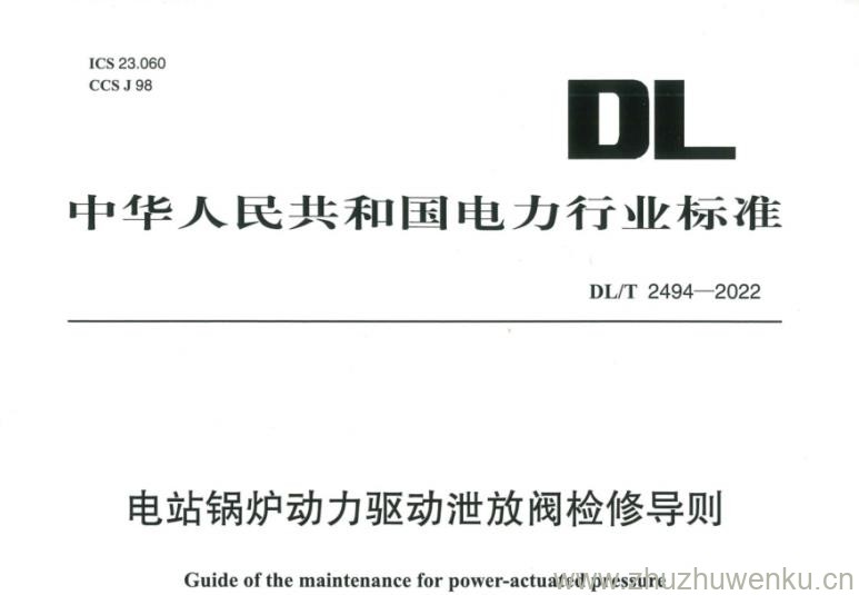 本文件DL∕T 2494-2022适用于以蒸汽为介质的电站锅炉用动力驱动泄放阀的检修。