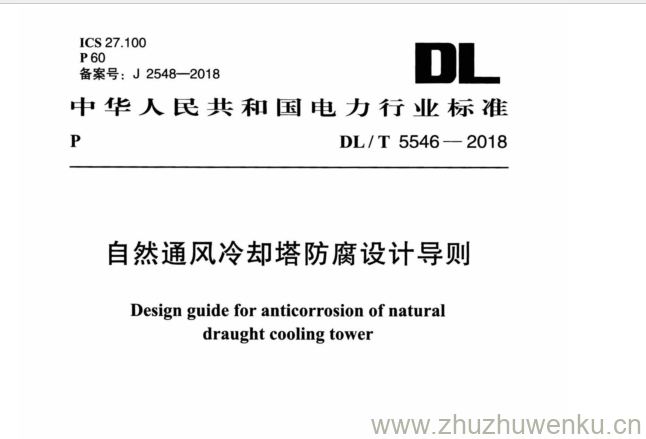 DL/T 5546-2018 pdf下载 自然通风冷却塔防腐设计导则。Design guide for anticorrosion of natural draught cooling tower.