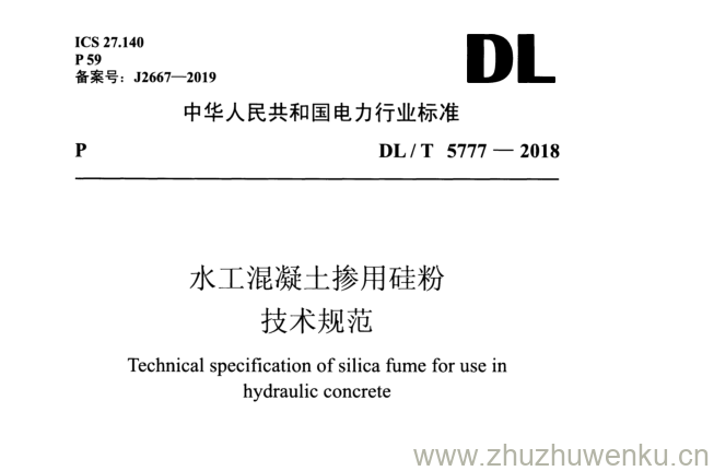DL/T 5777-2018 pdf下载 水工混凝土掺用硅粉 技术规范。Technical specification of silica fume for use in hydraulic concrete.