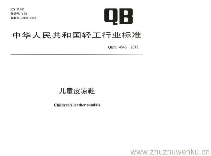 QB/T 4546-2013 pdf下载 儿童皮凉鞋。 Children’s leather sandals .