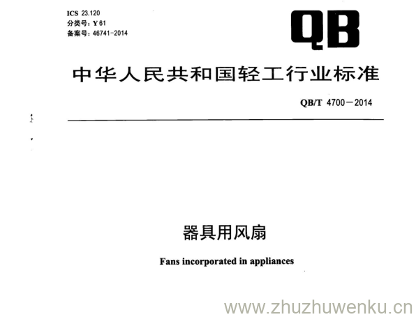 QB/T 4700-2014 pdf下载 器具用风扇 。Fans incorporated in appliances .
