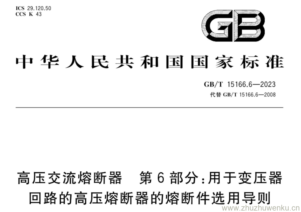 GB/T 15166.6-2023 pdf下载 高压交流熔断器 第6部分:用于变压器回路的高压熔断器的熔断件选用导则