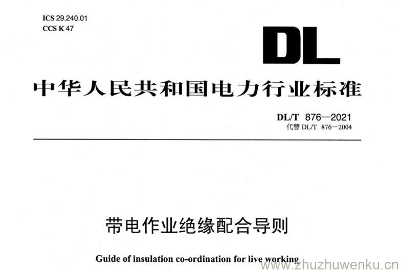 DL/T 876-2021 pdf下载 带电作业绝缘配合导则。Guide of insulation co-ordination for live working.