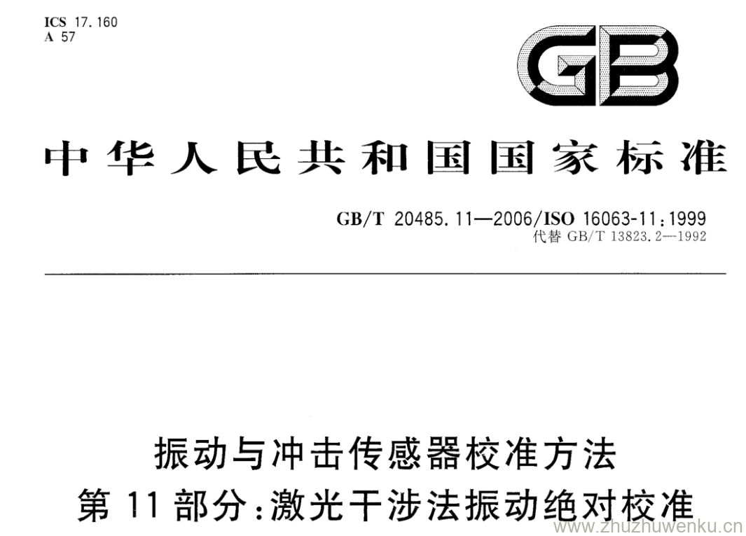 GB/T 20485.11-2006 pdf下载 振动与冲击传感器校准方法 第11部分:激光干涉法振动绝对校准